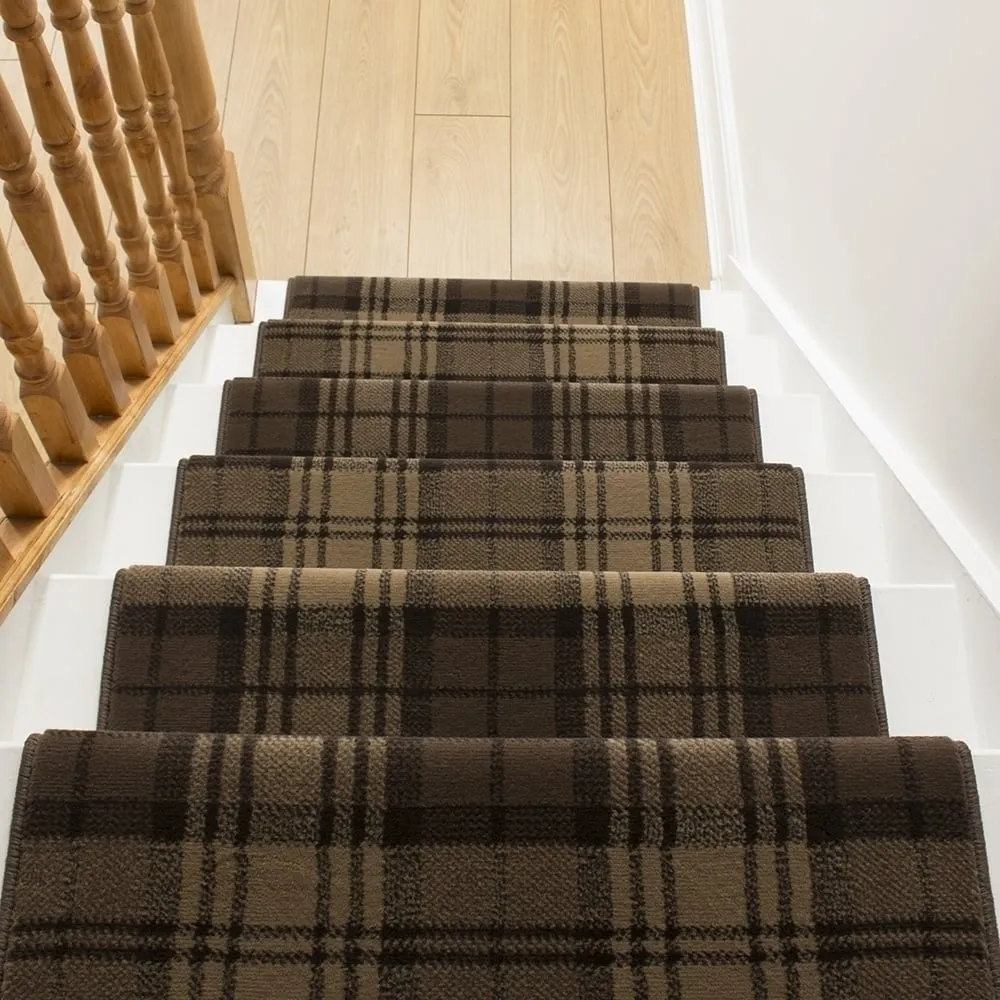This Plaid brown stair runner introduces a warm, classic pattern to enhance any staircase. Its dense, tight pile ensures a soft feel while coping with daily use. Built for active homes, it stays durable and maintains its appearance over time.